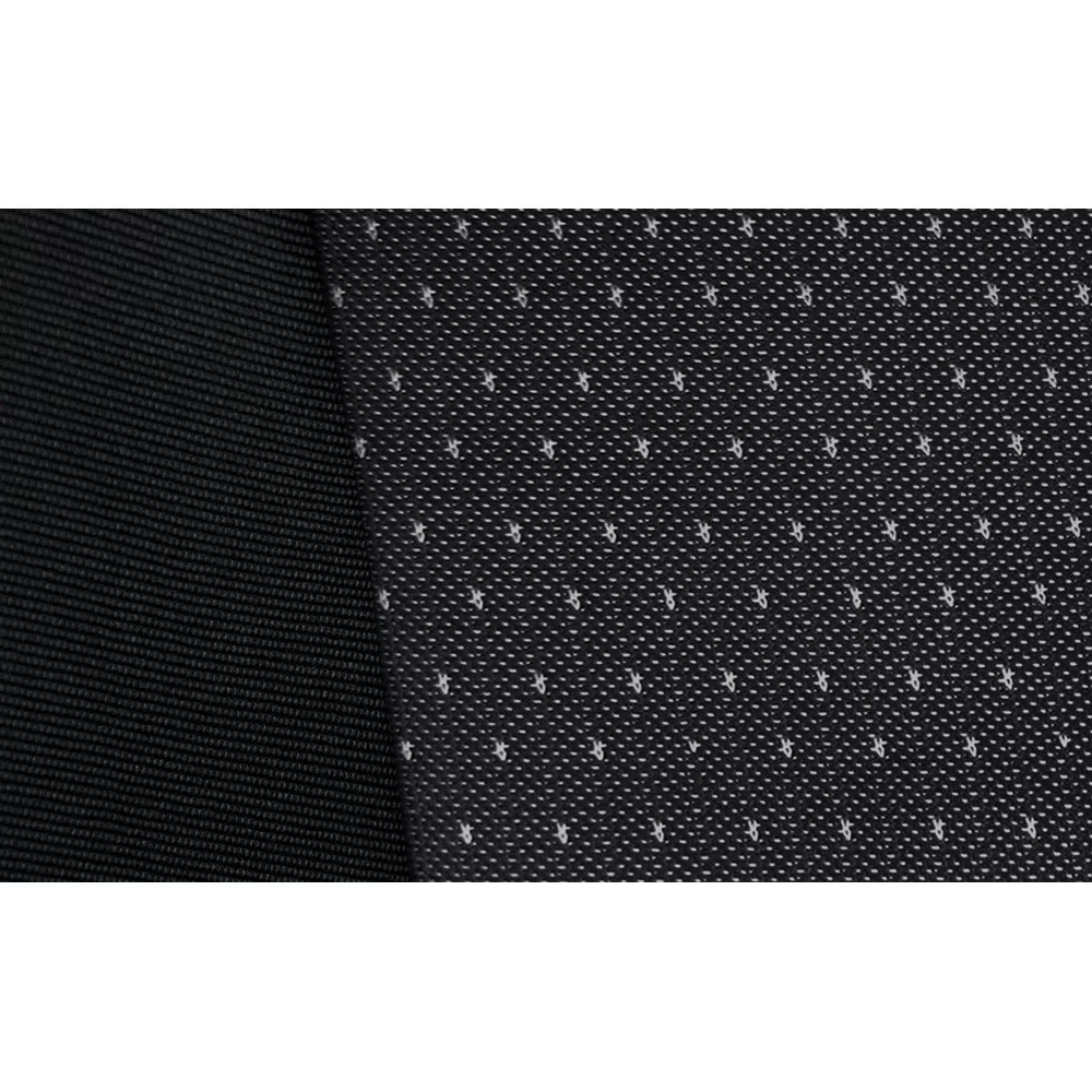 és oldalsó részéik optimális minőségű kárpitanyagokból készülnek fekete színben,  a középső részen pedig jacquard anyagból, az ülések eredeti kárpitjához hasonló mintázattal.