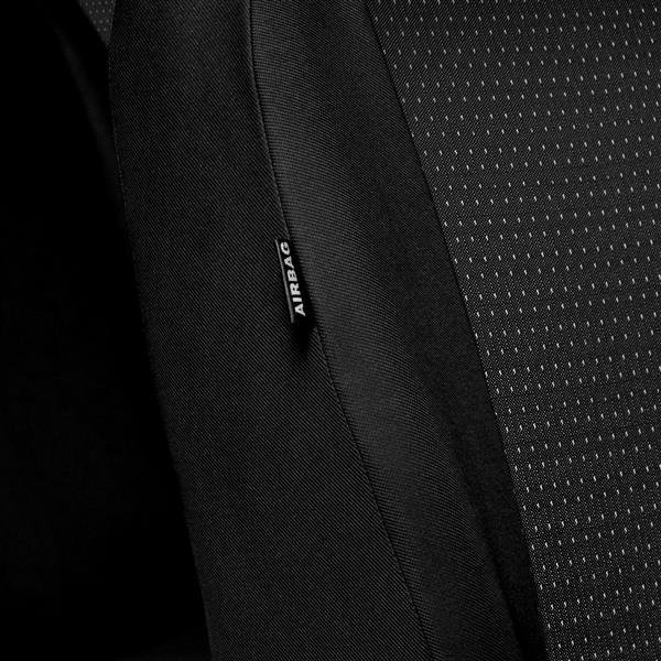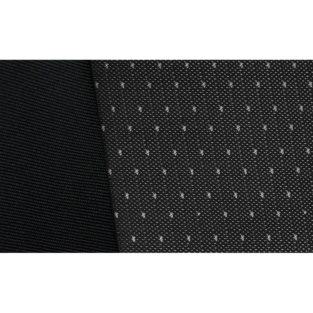 és oldalsó részéik optimális minőségű kárpitanyagokból készülnek fekete színben,  a középső részen pedig jacquard anyagból, az ülések eredeti kárpitjához hasonló mintázattal.
