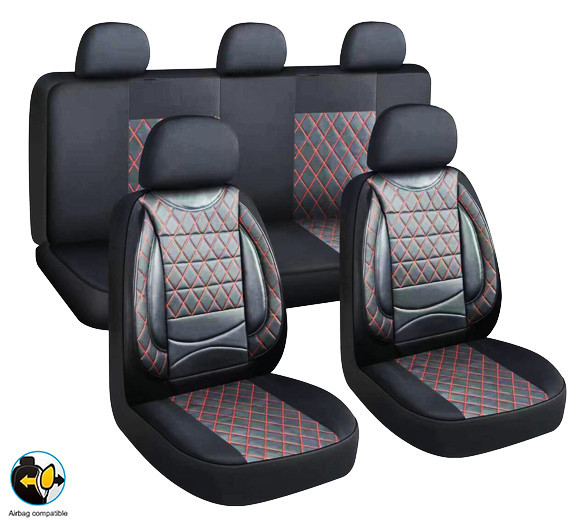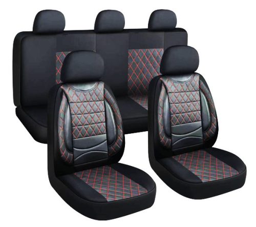 11 részes univerzális üléshuzat szett - 2HELYEN osztható Légzsákos - fekete/Piros