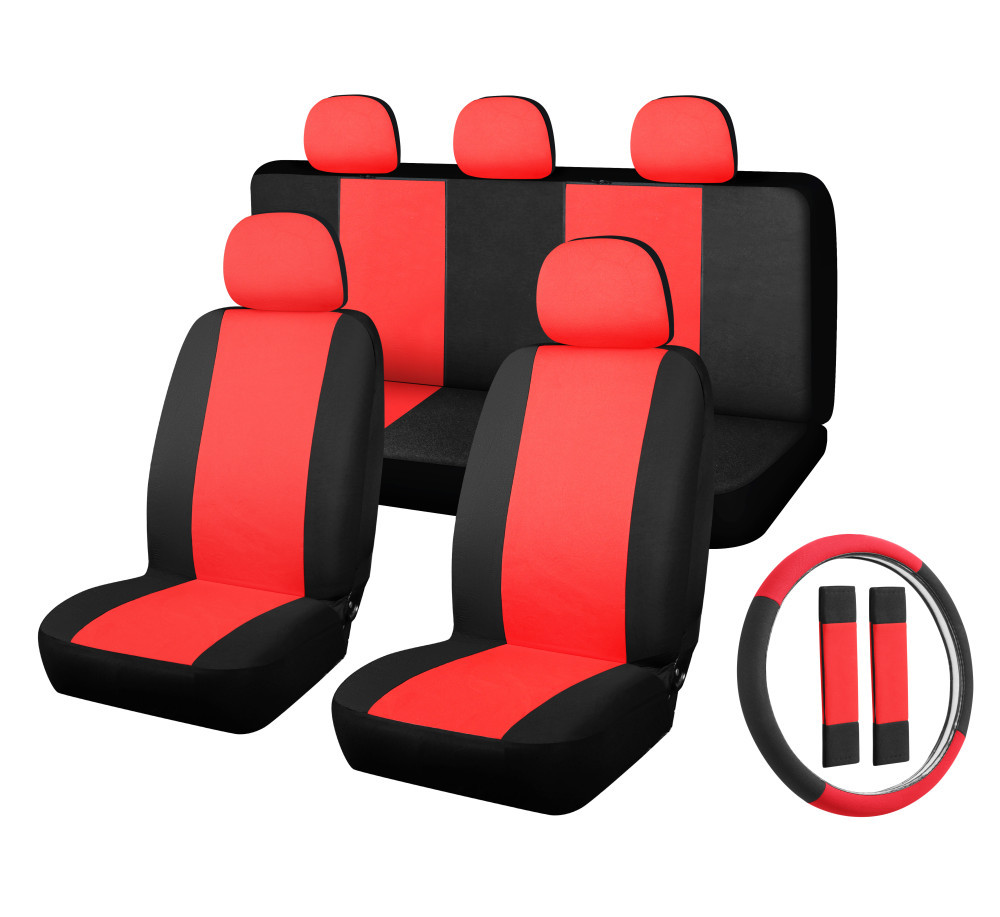 01570 11 teilig Sitzbezug Set - rot-schwarz an 2 Stellen teilbar - airbaggeeignet universelles Sitzbezugsset