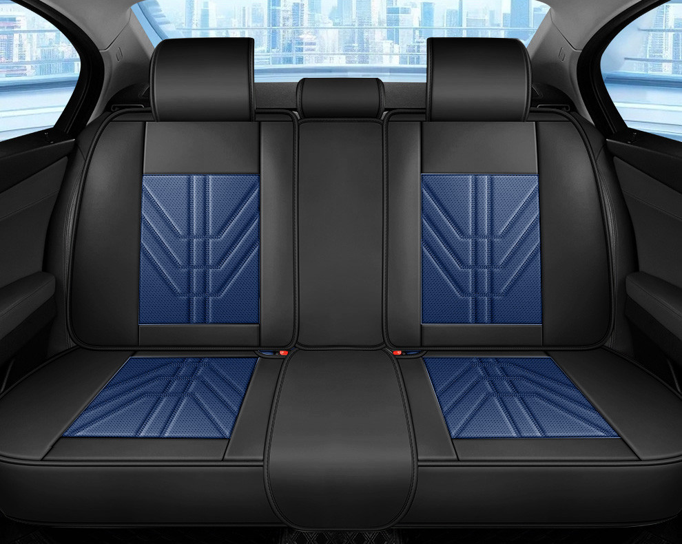 Chevrolet Avalance 13 részes Prémium Magas minőségű Műbőr üléshuzat szett nyakpárnákkal - Légzsákos - Osztható - Fekete/Sötét kék színben