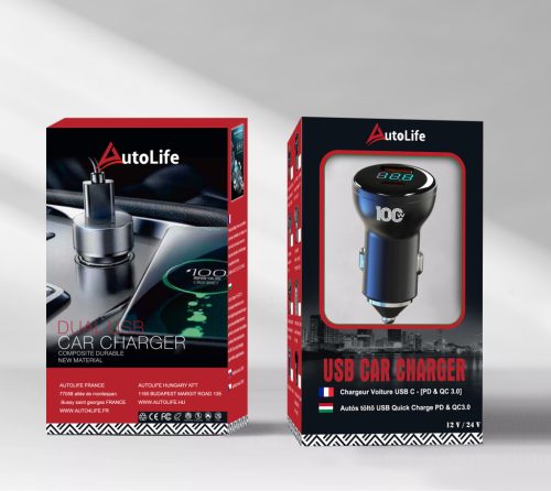 Schließen Sie das Schnellladegerät einfach an eine Standard-Zigarettenanzünderbuchse im Auto an (erforderliche Parameter: 12/24 V). An der Oberseite befinden sich zwei Anschlüsse: ein herkömmlicher USB-Anschluss und ein USB-Typ-C-Anschluss. So können Sie zwei Geräte gleichzeitig laden.