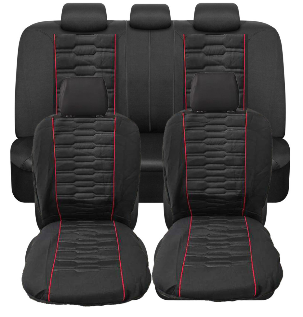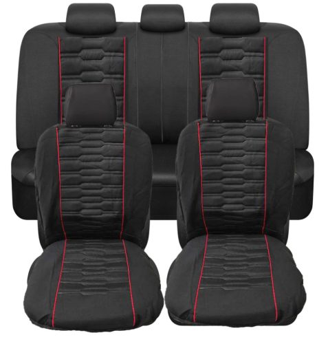 9 részes univerzális üléshuzat szett - Légzsákos - fekete színű, piros csíkokkal