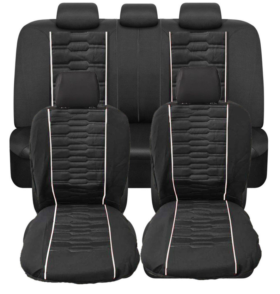 9 részes univerzális üléshuzat szett - Légzsákos - fekete színű, fehér csíkokkal