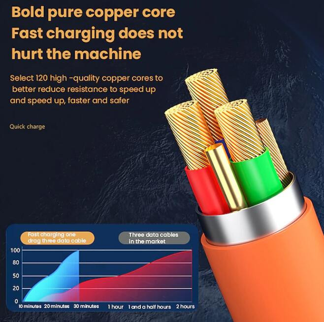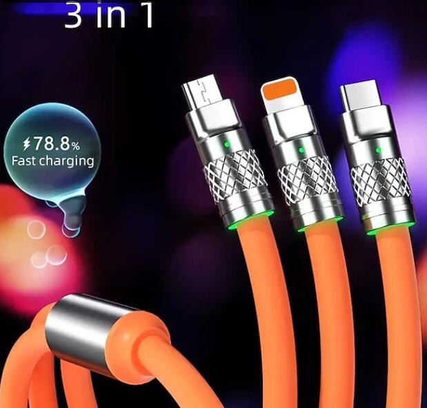 3-in-1 Silikon-Schnellladekabel – 6 A, 12–24 V, 120 W