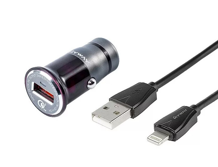 Hochleistungs-Autoladegerät für den Zigarettenanzünder. Die Funktion des Spannungsteilers wird durch eine LED-Anzeige signalisiert. Eingang: 12/24 V DC. Ausgang: USB-Ladegerät: QC3.0-Ladegerät, 1 x USB + USB-Kabel. iPhone. Spannung: 12/24 V DC, max. 36 W. Belastbarkeit: max. 3 A. Ausgang: 1 x Zigarettenanzünderbuchse.