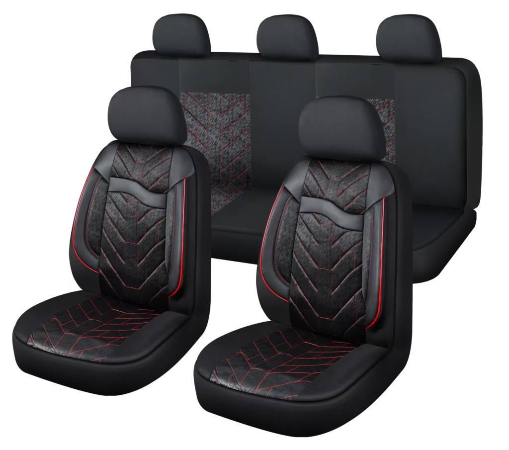 DAEWOO ESPERO 11 teilig Kunstleder+Szövet anyag universelles Sitzbezugsset - an 2 Stellen teilbar airbaggeeignet - schwarz-rot