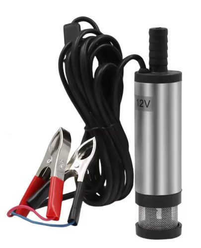 12-V-Tauchpumpe mit Ø 50 mm zum Fördern von Diesel, Heizöl und anderen Flüssigkeiten ähnlicher Dichte. Sehr praktisch und komfortabel in der Anwendung. Am Pumpeneinlass (unten) verhindert ein spezielles Metallgewebefilter das Ansaugen von Fremdkörpern, die das Gerät beschädigen und die Flüssigkeit verunreinigen könnten. Die Fördermenge beträgt ca. 15 l/min bei 12 V Gleichstrom. Anwendung: Die Temperatur der geförderten Flüssigkeit darf 30 °C und die maximale Umgebungstemperatur 40 °C nicht überschreiten.