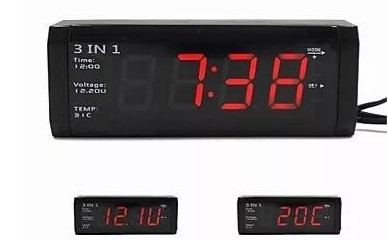 2. Nach dem Anschluss wechseln die Betriebsmodi (Uhr, Voltmeter, Thermometer).
